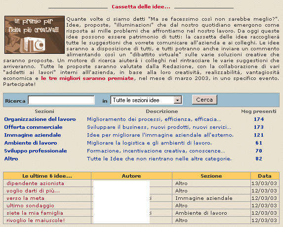 L’arrivo del web, e del web 2.0 ha permesso di realizzare delle applicazioni molto interessanti proprio dedicate a questo: io stesso ne ho realizzata una nel 2003 usando tecnologie abbastanza grezze (in realtà poco più che un forum). Sotto potete vedere lo screenshot: non era certo la cosa più “cool” della Terra, ma ha funzionato ed era quello che potevamo permetterci sotto tanti punti di vista: